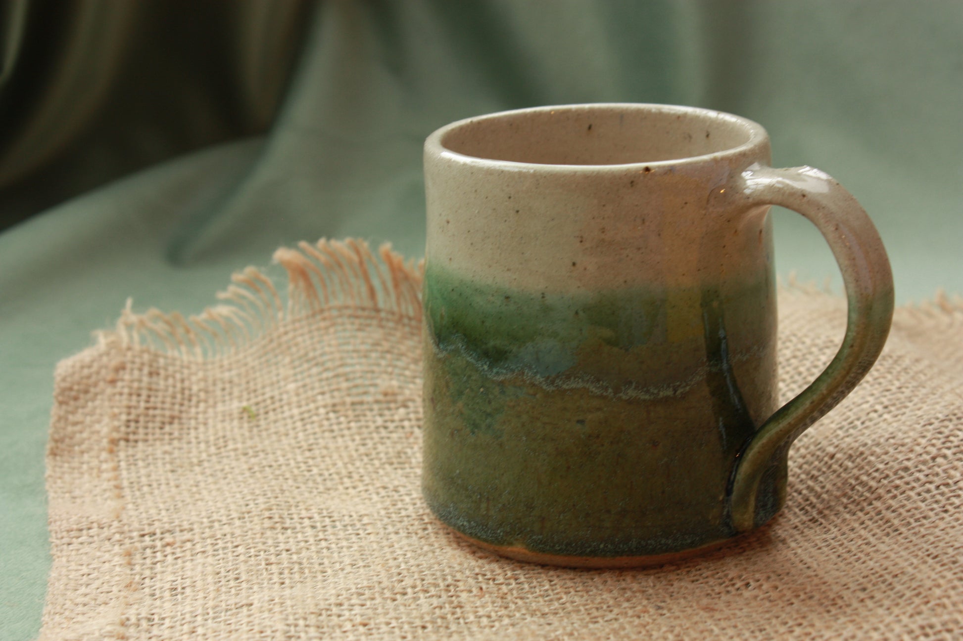This beautifully crafted taper cup celebrates the natural beauty of speckled clay. A transparent glaze adorns the interior and upper exterior, while a deep mossy green envelops the base, creating an organic tideline where the two glazes meet. Inspired by riverside landscapes, the River Moss colourway brings that serene natural aesthetic to your daily rituals. Each cup is individually made, so subtle variations in glaze and form make yours truly one-of-a-kind. Ideal for warm drinks or as a meaningful gift for ceramic lovers.